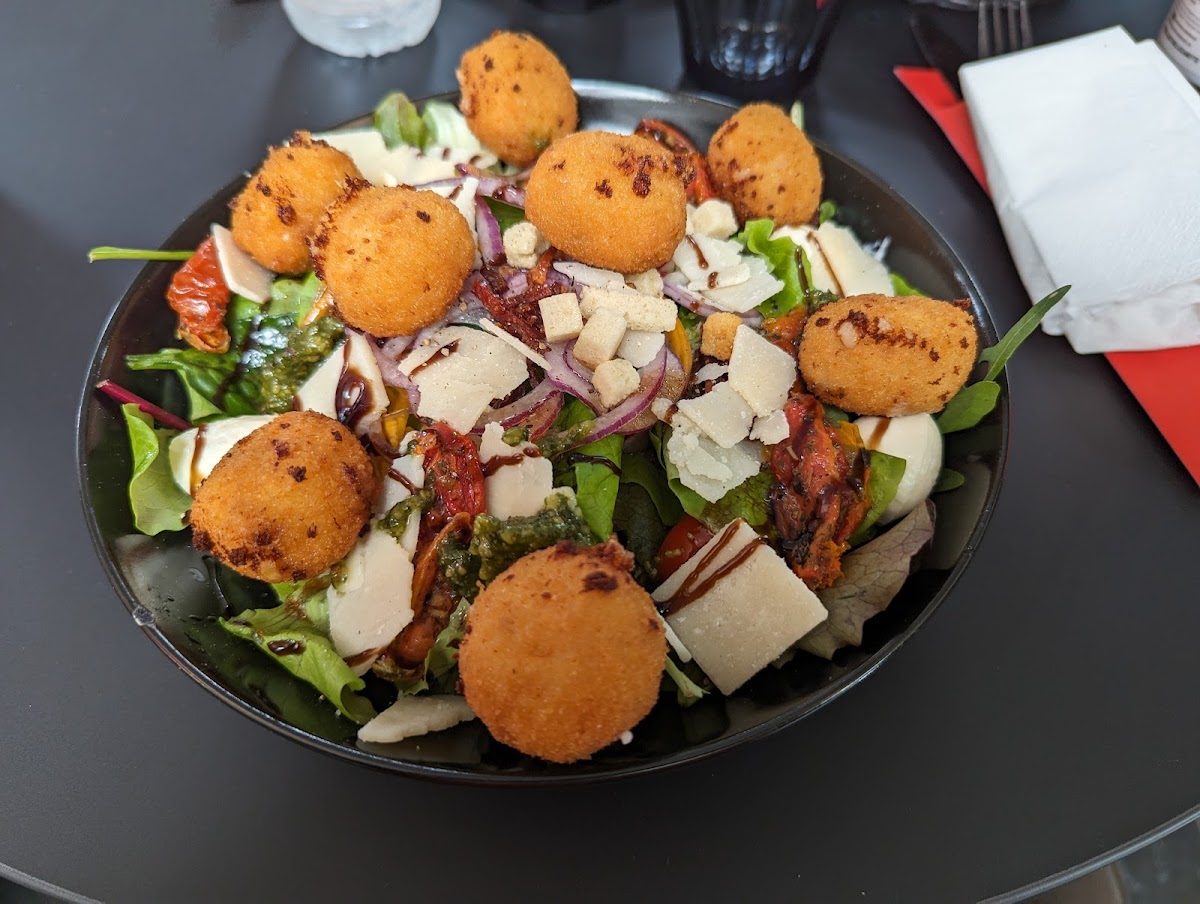 The star of Jeff's Croquettes menu is undoubtedly their Mini Croquettes En Salade. This signature dish combines crispy croquettes filled with creamy, savory fillings, served alongside a fresh, vibrant salad. It’s a delightful dish that’s perfect for any occasion - whether you’re stopping by for a light lunch or a hearty snack. The croquettes are crispy on the outside and wonderfully smooth on the inside, making each bite an absolute treat.